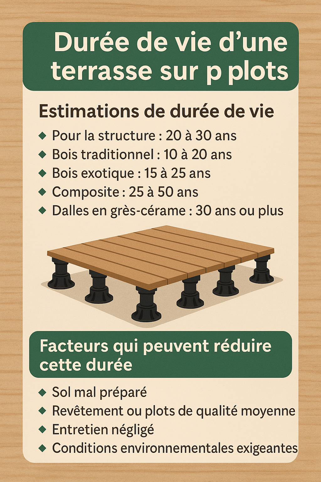 La terrasse sur plots est devenue un incontournable dans l’aménagement extérieur moderne. Facile à poser, modulable et sans gros travaux, elle séduit autant les amateurs de design que les passionnés de bricolage. Mais une question revient souvent : combien de temps une terrasse sur plots peut-elle réellement durer ? Entre la qualité des matériaux, les conditions climatiques et l’entretien, la réponse mérite d’être détaillée.