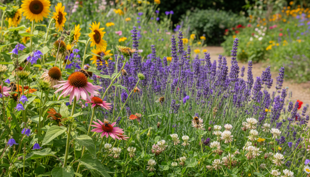 - 🌿 Le trèfle : Facile à intégrer, il nourrit les abeilles tout en enrichissant le sol en azote.